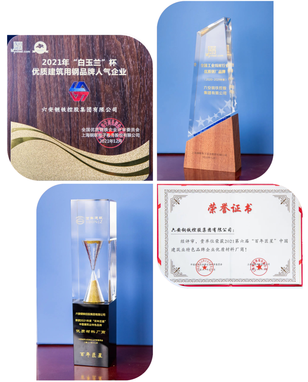經(jīng)過全國優(yōu)質(zhì)鋼鐵企業(yè)評(píng)審委員會(huì)、中國建筑業(yè)品牌企業(yè)評(píng)審委員會(huì)、上海鋼聯(lián)電子商務(wù)股份有限公司、鋼鐵行業(yè)專家及各領(lǐng)域?qū)W者的嚴(yán)格選拔,憑借過硬的產(chǎn)品質(zhì)量和良好的市場認(rèn)可度,六鋼集團(tuán)分別榮獲“2021年’白玉蘭’杯優(yōu)質(zhì)建筑用鋼品牌人氣企業(yè)”、“2020-2021年度全國工業(yè)線材行業(yè)優(yōu)質(zhì)鋼廠品牌”、“2021年度’百年匠星’中國建筑行業(yè)特色品牌優(yōu)質(zhì)材料廠商”三項(xiàng)榮譽(yù)。其中六鋼集團(tuán)連續(xù)兩年獲得“全國工業(yè)線材行業(yè)優(yōu)質(zhì)鋼廠品牌”,“‘百年匠星’中國建筑行業(yè)特色品牌優(yōu)質(zhì)材料廠商”更是連續(xù)三年當(dāng)選。