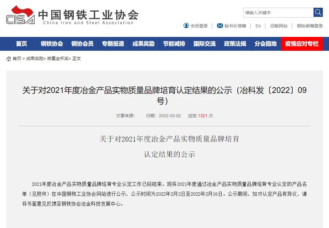 近日,中國鋼鐵工業(yè)協(xié)會(huì)公布了2021年度冶金產(chǎn)品實(shí)物質(zhì)量品牌培育認(rèn)定產(chǎn)品名單,六安鋼鐵控股集團(tuán)旗下安徽首礦大昌金屬材料有限公司鋼筋混凝土用熱軋帶肋鋼筋(直條)HRB400E順利通過申報(bào)、初審、顧客滿意度調(diào)查、現(xiàn)場實(shí)物抽樣檢驗(yàn)、專業(yè)評(píng)審等認(rèn)定程序,并由鋼鐵工業(yè)協(xié)會(huì)審定委員會(huì)審定,首次榮獲冶金產(chǎn)品實(shí)物質(zhì)量“金杯獎(jiǎng)”,實(shí)現(xiàn)了“金杯獎(jiǎng)”產(chǎn)品零的突破,標(biāo)志著“六鋼螺紋鋼”成為行業(yè)品牌產(chǎn)品和標(biāo)桿產(chǎn)品。